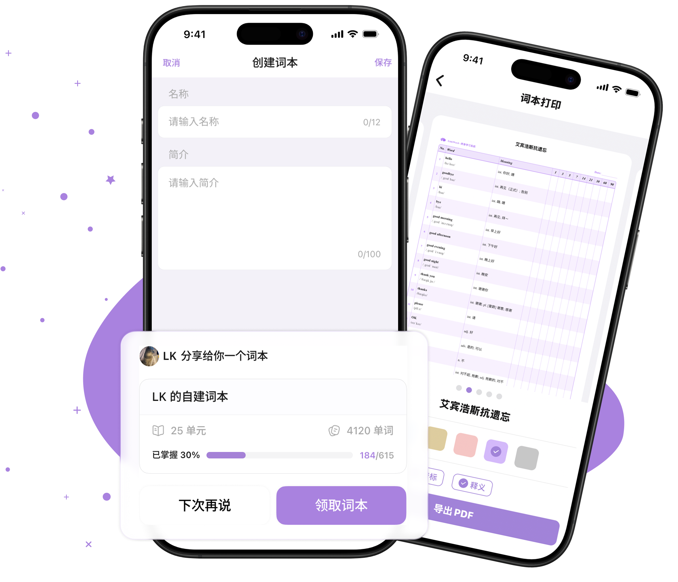 自建专属词本自由分享和打印